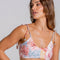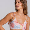 The Floral Whisper Bralette Bikini Top features a soft bralette silhouette finished with a subtle ruffle trim along the bust for a romantic touch.