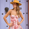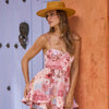 Light, feminine, and made for sun-drenched moments. The Floral Whisper Short Dress features a soft ruffle hem that adds playful movement with every step. Designed with an adjustable strappy back detail, this silhouette offers a customizable fit while creating an effortlessly flattering shape.