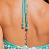 The Mayan Shades Halter One Piece is defined by its bold silhouette and artisanal details. Made in textured fabric and finished with cord ends, it features cut-outs that flatter the waistline, creating an elegant and confident fit with moderate coverage.