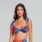 A statement of support and artistry. The Sunset Fiesta Over-the-Shoulder Bra Top combines handmade embroidery with the structure of underwire. Finished with beaded accents at the ends of the back ties, it’s refined with artisanal charm.